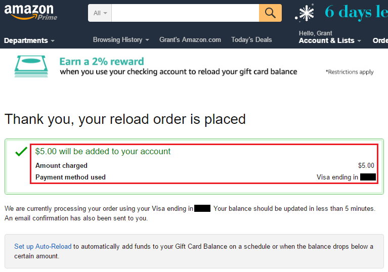 I tried several times to reload my Amazon gift card balance with $5 using my new Avianca Vuela Credit Card, but every time I would submit an order, I would get an email that the reload was declined. After failing 4 times, I called the number on the back of the Avianca Vuela Credit Card to see what was going on. The rep was very helpful and said that my credit card was not fully activated, even though I activated it online. She stated that there has been some issues lately with online card activations. I then asked the rep to verify that the promo code was successfully added to my application. The rep put me on hold for 2-3 minutes to look at my application. In the meantime, I successfully reloaded $5 to my Amazon gift card balance using my new Avianca Vuela Credit Card. Moments later, the rep confirmed that the promo was added to my application and that I would get 60,000 miles after making my first purchase.