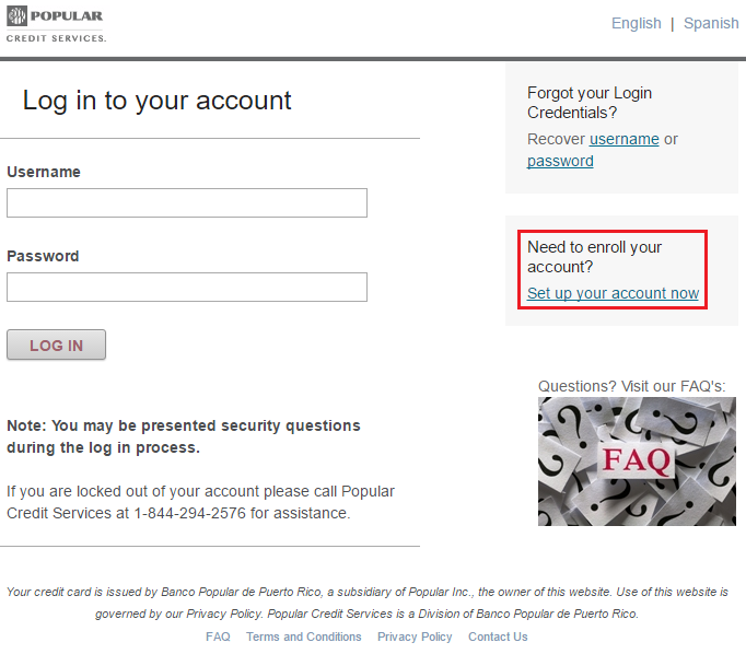 After I received credit card, I went to the Popular Credit Services website (the online account provider for the credit card) and created an online account. During the process, I thought I activated the credit card because I had to enter the card information into the website. After creating my account, I was able to log in and see my card details.