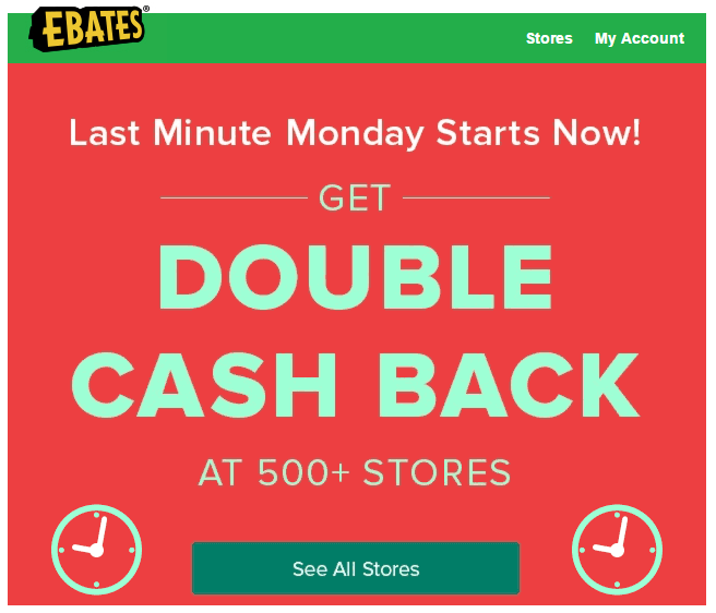 Good evening everyone, I hope you all had a great weekend. I just received an email from Ebates regarding their latest promo – Last Minute Monday. Ebates is offering double cash back at 500+ stores through 11:59pm PT on 12/19. I am not sure if these are the same 500+ stores that were in the Black Friday or Cyber Monday promo, but I am sure there is a lot of overlap. To the one person who has not signed up for an Ebates account, click here to create your free account (you also get a $10 bonus after you make a $25 purchase).