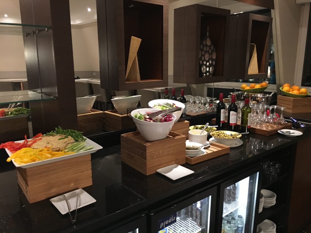 Food: My Marriott Gold Elite status gave us access to the Executive Lounge on the 7th floor. Breakfast in the lounge consisted of eggs, baked beans, bacon and sausage, fruit and yogurt, cereal, and a selection of bread and pastries. They also offered a substantial evening buffet of chicken wings, brussels sprouts, potatoes, chips with salsa and guacamole, vegetables and hummus, cheese with bread and crackers, salad, and wine.
