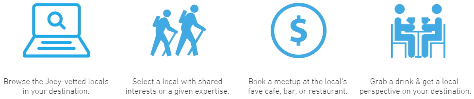 JoeyTravel.com uses a written application plus a Skype interview. When selecting locals, they look for people who are passionate and knowledgeable about their hometowns and excited to welcome travelers from around the world. They also ensure that they are safe and reliable. They currently only accept English-speaking locals, but plan to offer additional languages in the future. Most of the locals are referred to them by current Joey locals, which makes the global network of locals feel like a close-knit community.
