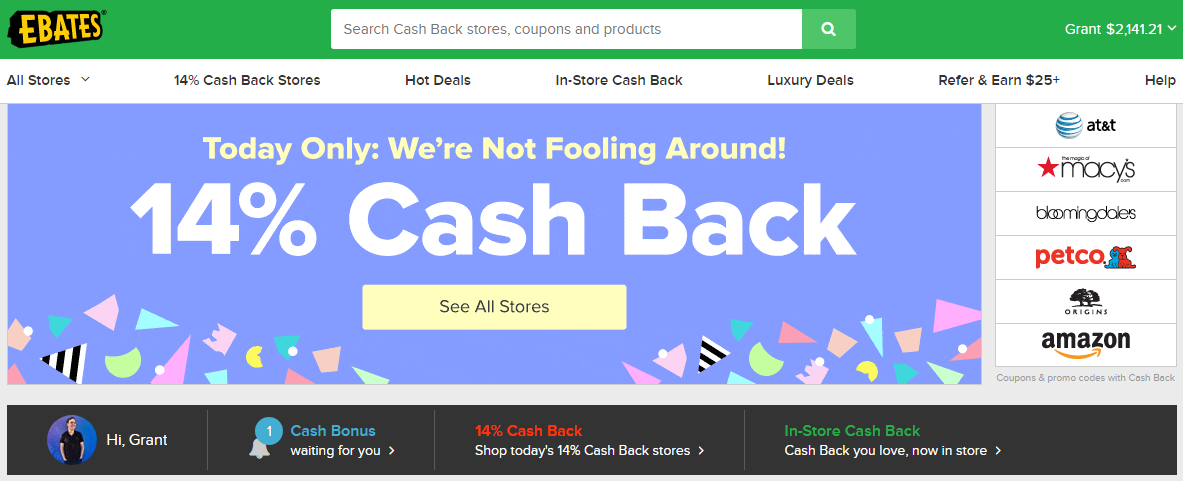 Here are the featured merchants who are offering 14% cash back. The full list of merchants can be found here. If you were planning on making any online purchases today, remember to use Ebates to earn some extra cash back.