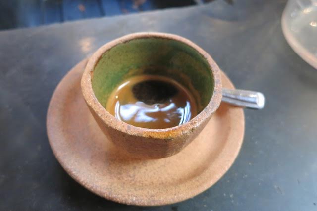 There’s plenty of indoor seating of various sized tables and even though the space was noisy it was still fine for talking… at least early in the morning. As luck would have it, or because it was Sunday morning in a late rising city, I got a great table for two right where I had an excellent view of the barista. He has a wonderful energy and I enjoyed talking with him and watching his focus as he produced each beverage.