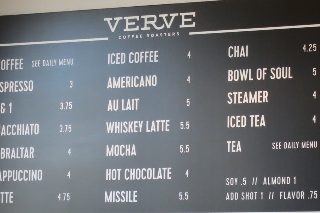 Like many of the other coffee house managers I spoke with, Stewart said the owners of Verve were great to work for. He also told me something that I’ll admit surprised me. This was also confirmed by other managers. He told me he hired people with no coffee house experience! He was looking for a certain personality and work ethic, but felt that if people had worked at other coffee houses he would have to UNTRAIN their bad habits. Verve, as well as the other roasters, want things done a certain way, so better to work with someone who has a clean slate. Though surprising, I certainly see his point.